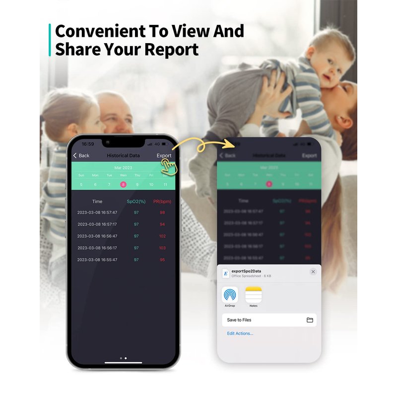 - With bluetooth function:record and store a reading up to 10 hours continuously, view real time data, graphic report and trends of blood oxygen saturation and heart rate, bluetooth oximeter will self switch off when a finger is removed from the unit for more than 10 seconds