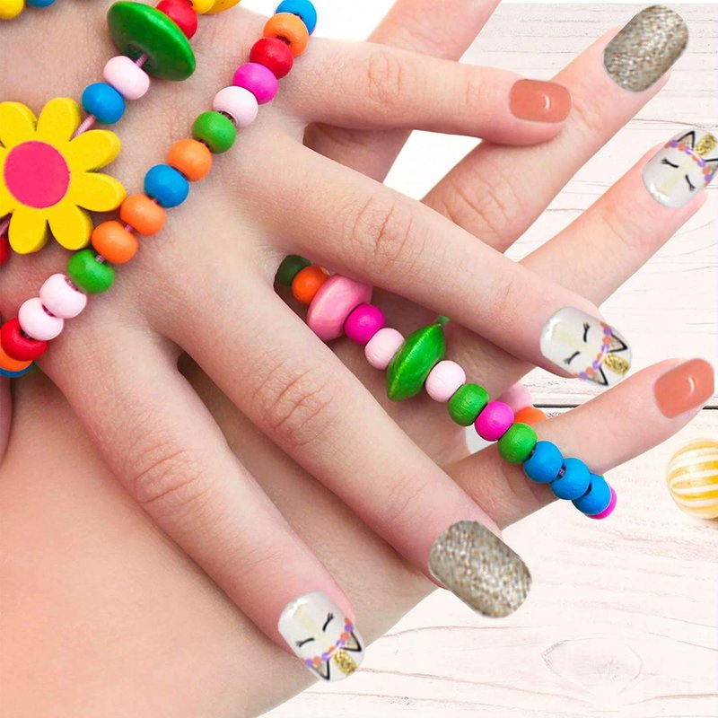 Pumkryth False Nails Press on Nails for Kids-Self-adhesive Fake Artificial Full Cover Acrylonitrile Butadiene Styrene Nail Art Kits Nail Glue Tabs for Girls Children