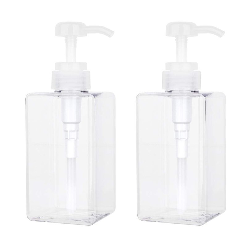 Pump Bottle, 15oz/450ml Refillable Plastic Empty Lotion Soap Dispenser Liquid Container for Shampoo or Body Wash, 2 Pack Clear