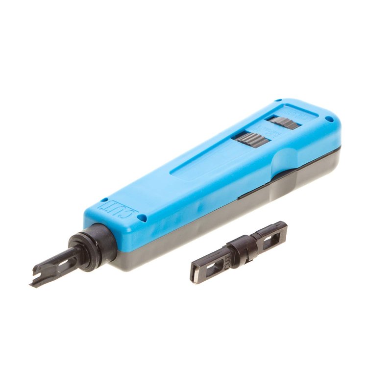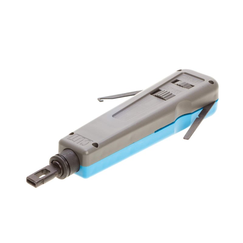 This professional grade impact punch down tool is used for inserting wires into sockets, patch panels or outlets. Includes a compartment for storing spare blades. It has an ergonomic design which is easy to handle. It contains 2 blades 100 and 66 and an extra wire stripper which will make the wire cutting more easy and convenient.