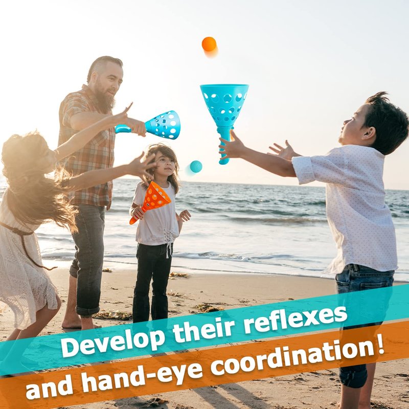 punkdog Pop and Catch Ball Game with 24 Balls and 4 Catch Launcher Baskets - Outdoor Indoor Game Activities, Easter Basket Stuffers Gifts Beach Sport Summer Beach Toys for Kids Ages 4 5 6 7 8 10 12+