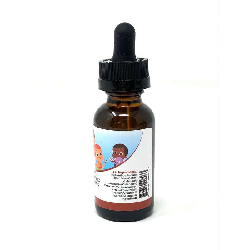 Have your child lay down and drop 2-3 drops into the ear canal. Do not touch dropper tip to the ear to avoid spreading any infections. A cotton ball may then be gently placed in the ear to keep the oil from dripping out. Continue a few times per day as needed.