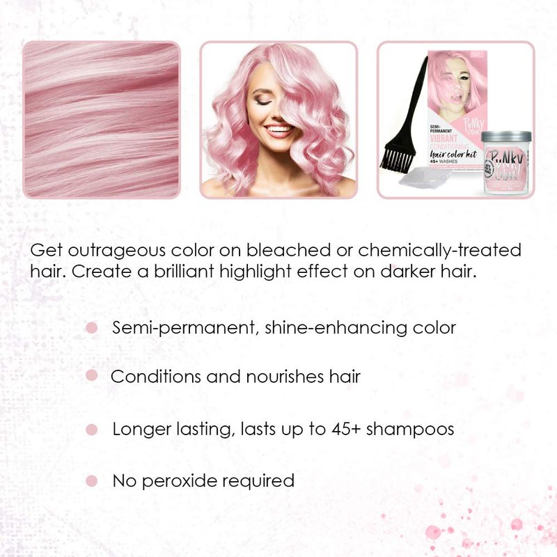- All-In-One Semi-Permanent Hair Color Kit: Everything you need to get high-intensity, long-lasting, hair color with an unbelievable shine without commitment. Includes (1) tint brush, (1)pair of disposable gloves, and (1) Punky Semi-Permanent Hair Color in Cotton Candy.