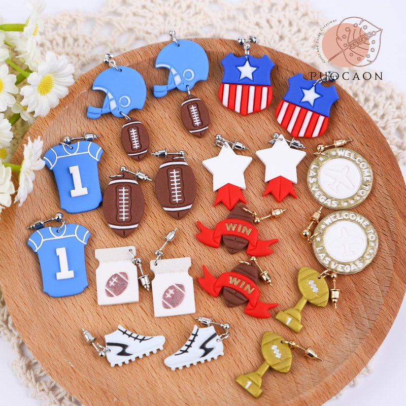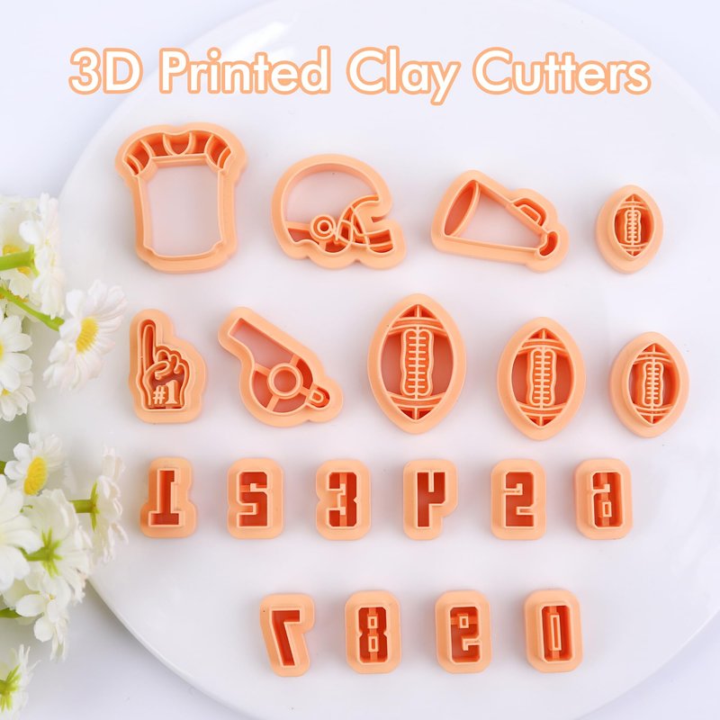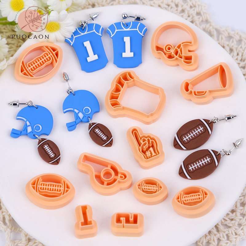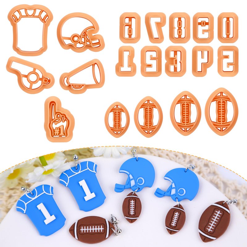 - Clay Cutters for Football Fans: When you receive these football clay cutters set, you can make unique clay earrings for the team your favored. Just mach the number cutters with the football uniform cutters, you can make your own support jewelry.