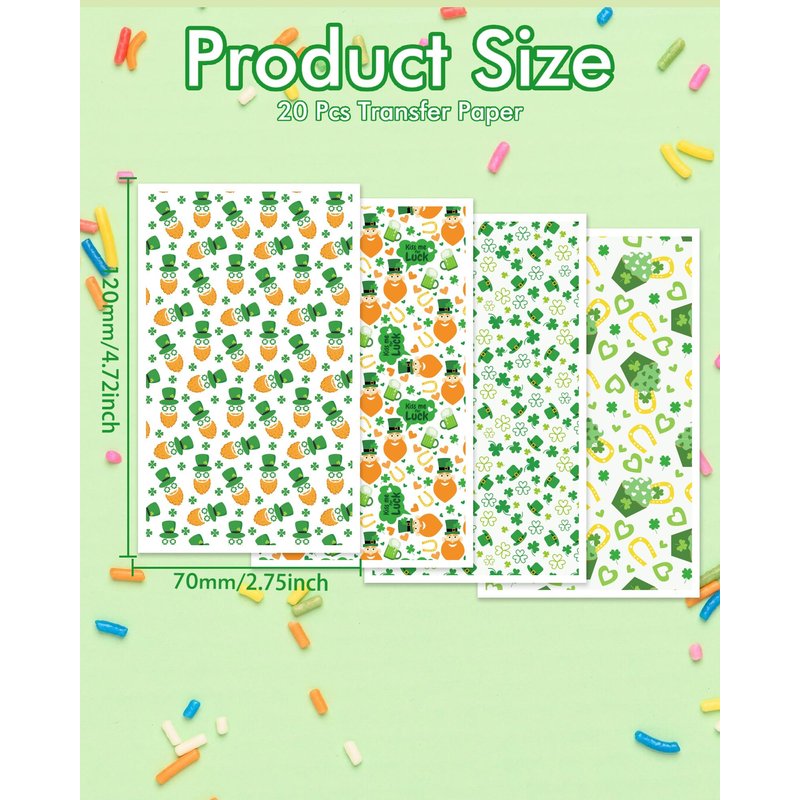 - Santa Patrick's Day Transfer Paper: It's a santa patrick's day theme polymer clay transfer paper set. You will receive 20 pieces of polymer clay transfer sheets, for 4 different design, every design got 5 pieces.