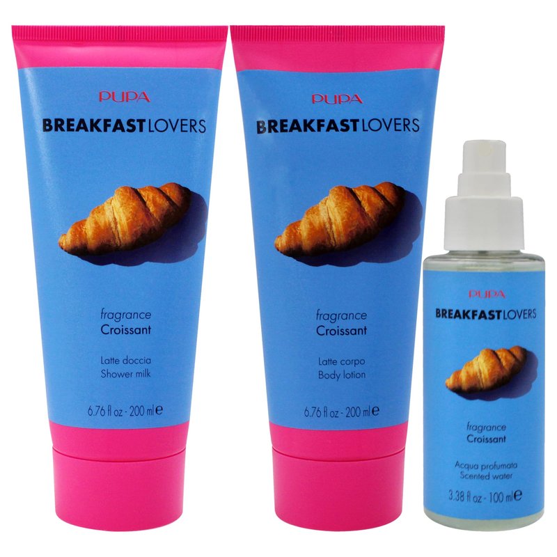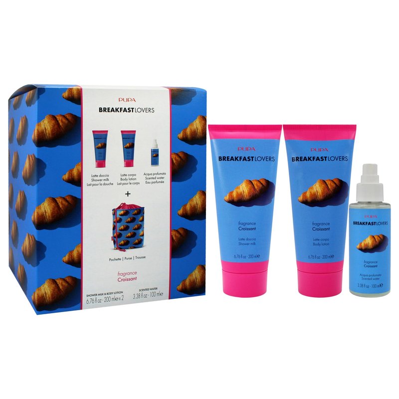Pupa Milano Breakfast Lovers Set, Croissant, 4 Pc - Moisturizing Body Lotion - Hydrating Body Wash - Body Mist - For Soft Skin - Skin Care Gift Set