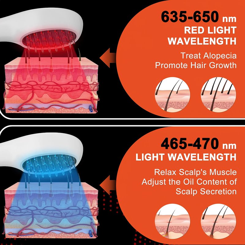Laser Therapy Hair Growth Comb is indicated to treat Androgenetic Alopecia, and promote hair growth in females who have Ludwig (Savin) I-4, II-1, II-2, or frontal patterns of hair loss and in males who have Norwood Hamilton Classifications of IIa to V and who both have Fitzpatrick Skin Types I to IV. Laser Hair Growth Comb (FDA Cleared), Professional Medical Grade Lasers, Red Light Hair Growth Treatment for Men & Women, Electric Scalp Massager for Hair Growth, Treat Alopecia