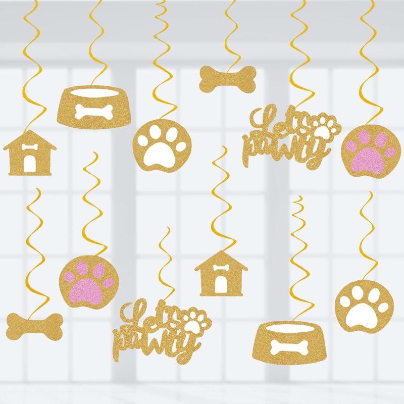Puppy Dog Party Decoration Let's Pawty Birthday Party Streamers Dog Paw Bday Party Hanging Swrils Decoration 24pcs Party Decor Banner Supplies, Assembled and Ready to Use