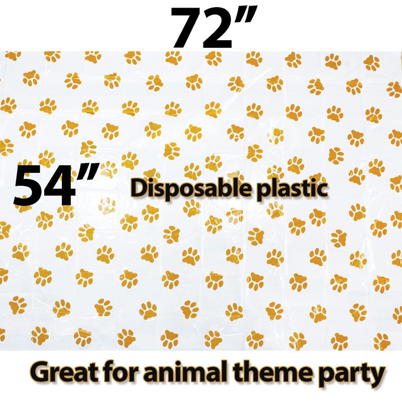 Puppy Paw Print Tablecloth Animal Print Tablecloth 54''x72'' Disposable Plastic Table Cover, Dog Birthday Party Supplies Puppy Party Decorations, Jungle Safari Baby Shower Dog Party Decorations