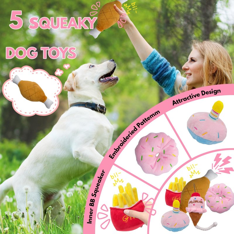 - 🧁Exciting Fun 5 Pack Squeaky Dog Toys - Watch your adorable pup go wild with excitement as they sink their teeth into our irresistible dog toys for small dogs. The playful squeaking dog toys will keep them entertained for hours, making playtime an absolute joy.