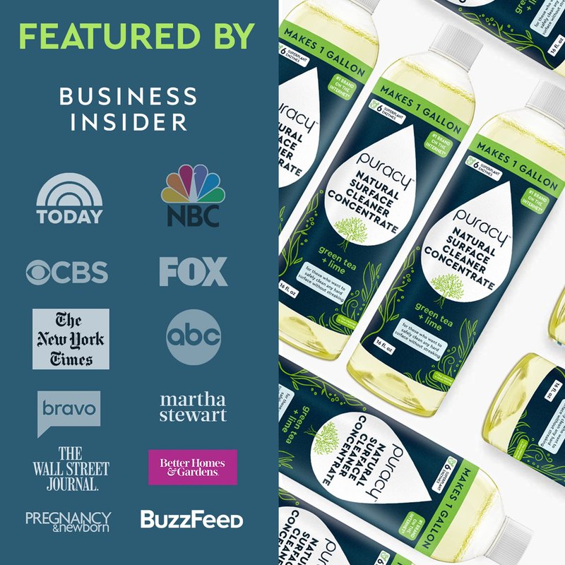 Puracy 99.9% Natural All Purpose Cleaner Concentrate - Makes 128oz Multi Purpose Cleaner - Green Tea & Lime - Surface Cleaner, Floor Cleaner, Kitchen, Cleaner, Bathroom Cleaner - Cleaning supplies