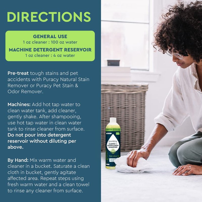 Puracy Professional Carpet Cleaner Machine Detergent, 4x Concentrated Upholstery Cleaner, Natural Carpet Shampoo, Pet Stain Remover & Deodorizer, Makes 20 Gallons of Cleaning Solution, 25 Ounce