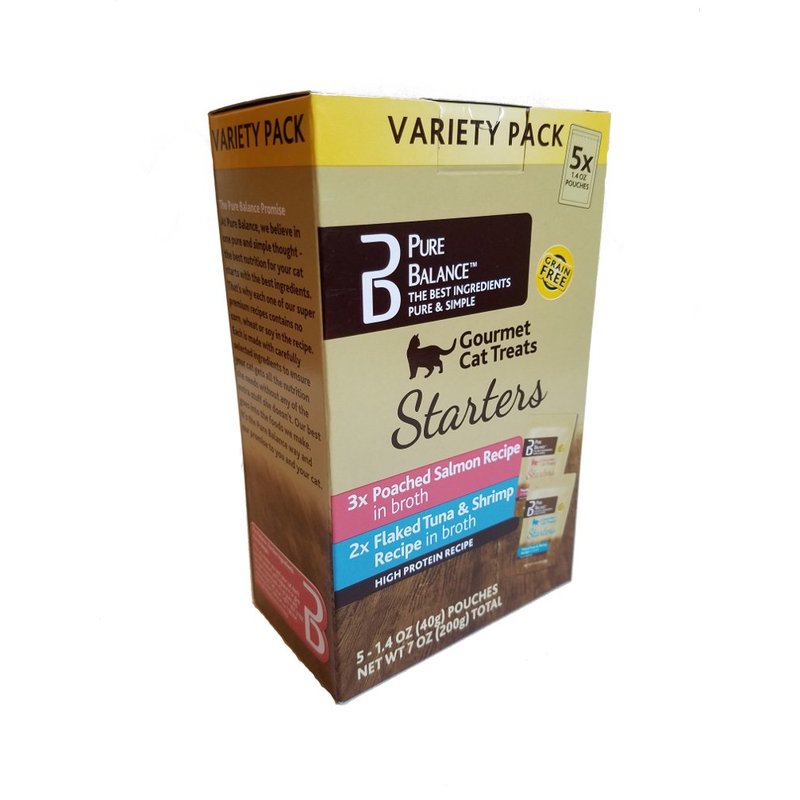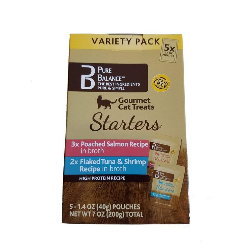 Pure Balance Gourmet Cat Treats Variety Pack Poached Salmon Flaked Tuna and Shrimp Recipe