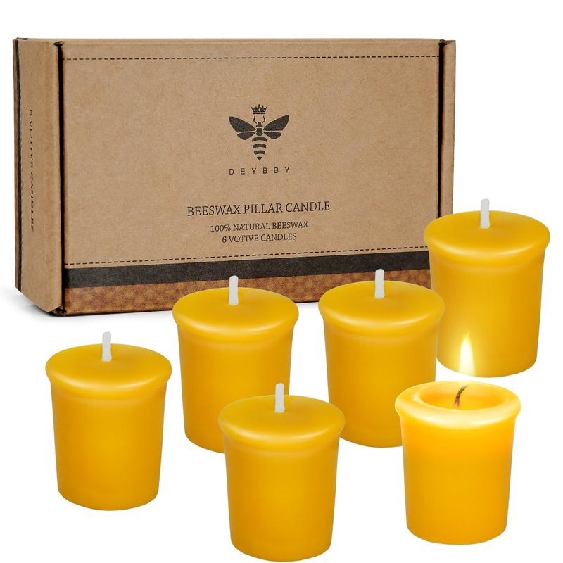 Pure Beeswax Votive Candles-6 Pack Natural Votives Set for Home Room Decor Party Wedding Spa Gift