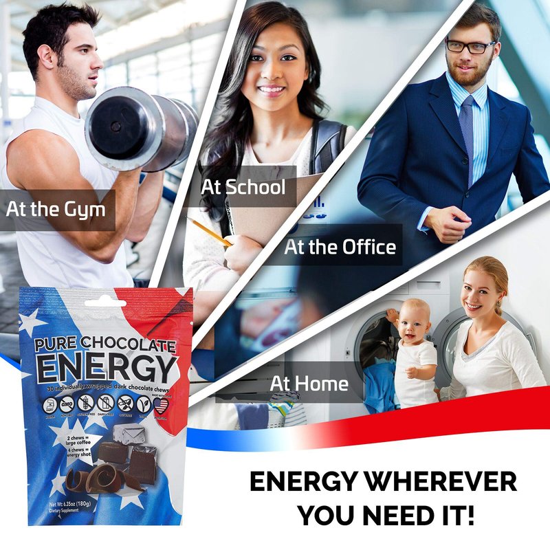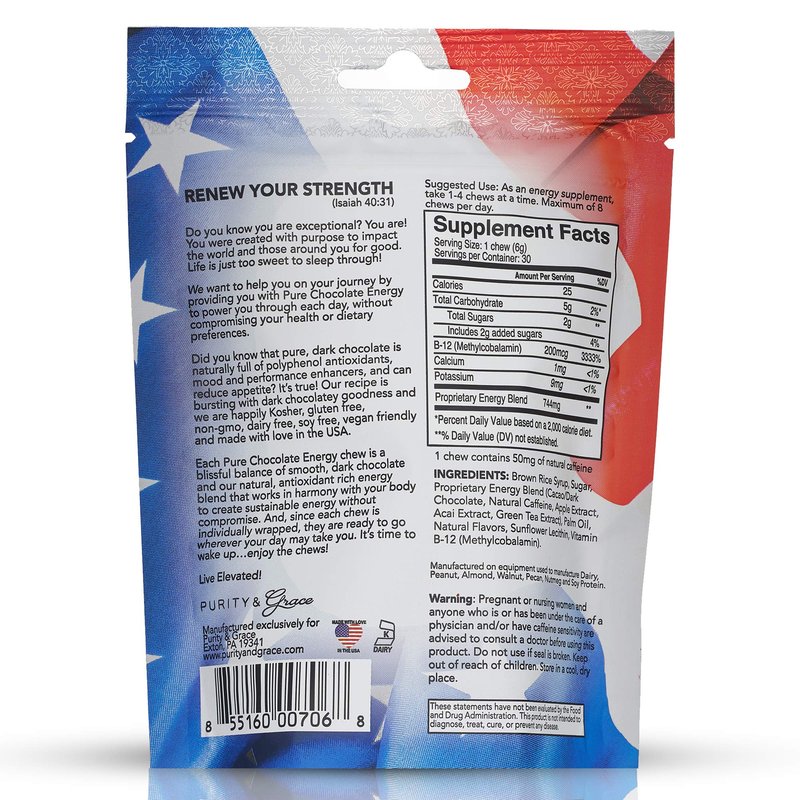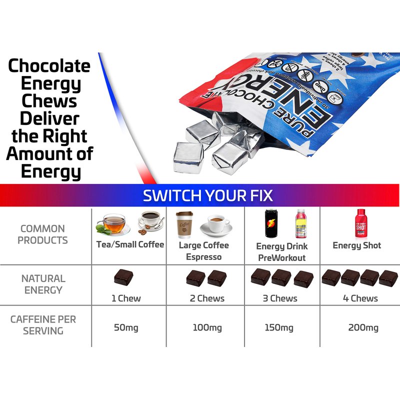- MADE IN THE USA: Pure Chocolate Energy chews are manufactured & packaged right here in the USA