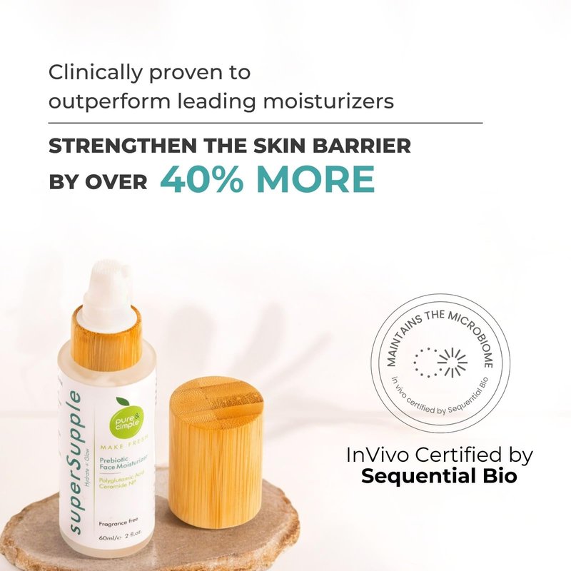 Pure & Cimple Prebiotic Face Moisturizer | Natural Blend with Polyglutamic Acid and Ceramide NP | Repair Skin Barrier, Balance and Deep Hydration, Advanced Facial Moisture Cream for Women (60ml)