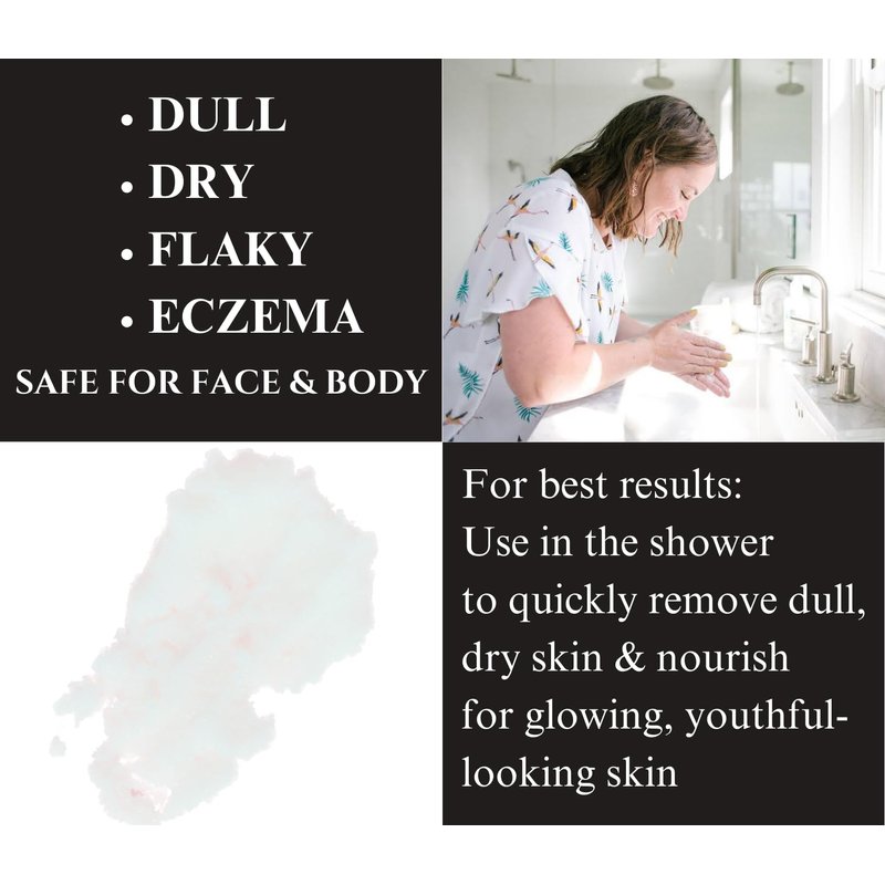 Turn dry, flaky, eczema skin into soft, smooth, and glowing skin naturally for the face & body. ‘p’Our body scrubs nourishing ingredients gently buff away dull, dry skin, revealing a softer, smoother, and brighter complexion without stripping your skin of its natural oils. ‘p’The results will leave your skin feeling hydrated, nourished, and glowing for irresistibly smooth skin that lasts all day. ‘p’How: Tiny cane sugar granules act as the multi-tasking exfoliator to gently yet effectively remove the dull, flaky skin and unveil the healthy smooth skin hidden beneath, preventing dry and eczema seasonal flare-ups. ‘p’Brimming with antioxidant-rich, nutrient-dense organic cold-pressed coconut oil acts as an excellent moisturizer that hydrates, nourishes and soothes the skin. ‘p’Results: Get ready to experience skin so moisturized nourished and irresistibly smooth skin to the touch. 'p'Buy now for your beauty & personal care needs or use in your spa gift baskets for women this Mother's Day.