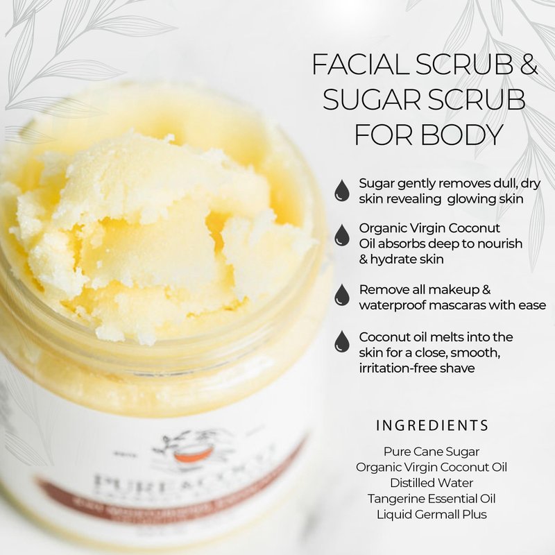 Pure & Coco Moisturizing Exfoliator: Organic Coconut Oil & Tangerine, Skincare Beauty Scrub - Moisturizer for Face, Body, Facial Exfoliator & Shaving Oil, Sugar Exfoliant - Dry & Eczema Skin (27.8oz)