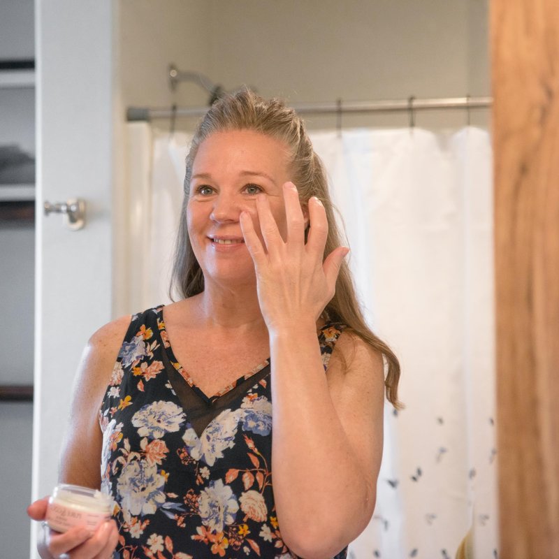 Turn dry, flaky, itchy-eczema skin into calm, smooth, soft, and glowing skin, naturally. How: Apply onto damp skin post-shower to lock and seal in moisture all day long. Use on the face to smooth the skin's texture, and add a radiant-youthful glow on the face, neck, decolletage/chest, and hands. Results: Because of this nutrient-dense formula, the natural antioxidant-rich botanicals improve complexion, and signs of aging, while calming dry, itchy eczema at the same time.