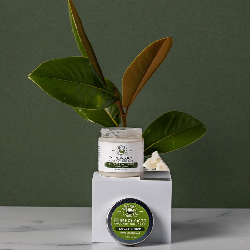 PURE & COCO: Sweet Grove 6-in-1 Best Face Moisturizer for Women's Dry Skin | Body Lotion for Dry Skin & Skin Repair | Ultra Rich Daily Face Moisturizer | Organic Coconut Oil | Set of 2, 4 oz Jars