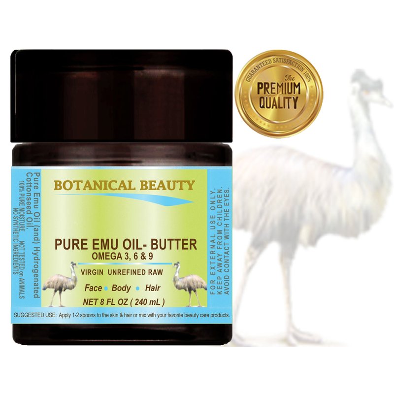 PURE EMU OIL- BUTTER. 100% Natural - RAW - VIRGIN - UNREFINED.for FACE, BODY, HANDS, FEET, NAILS & HAIR and LIP CARE. (8 Fl. oz. - 240 ml.)