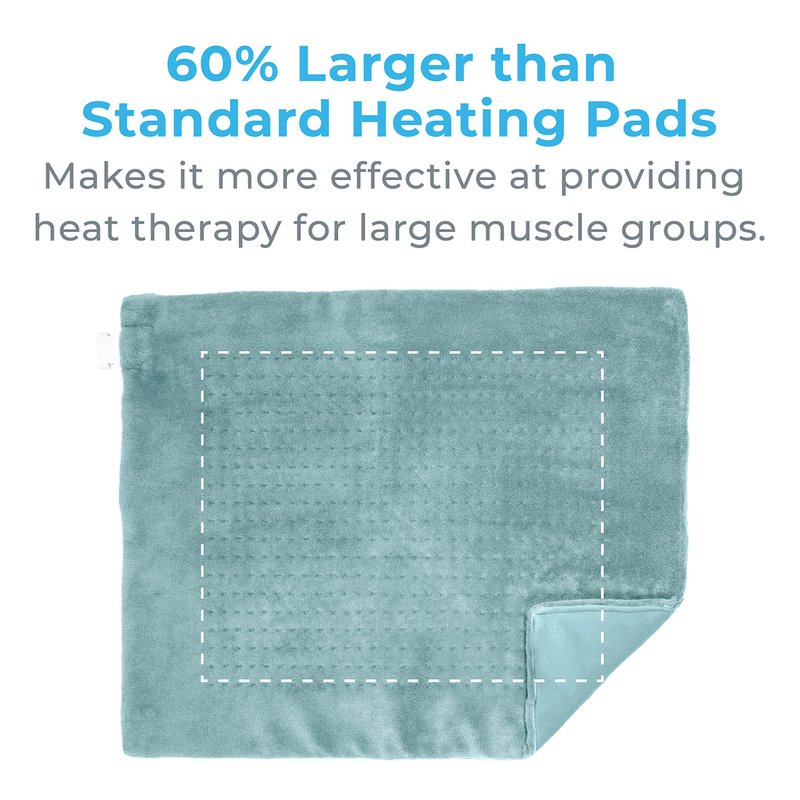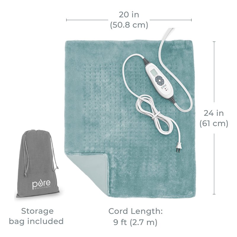 Pure Enrichment® PureRelief® Ultra-Wide Microplush Heating Pad - 20” x 24” XXL Size & 6 Heat Settings for Temporary Neck, Shoulder & Back Pain Relief - Moist Heat Option & Machine Washable (Sea Glass)