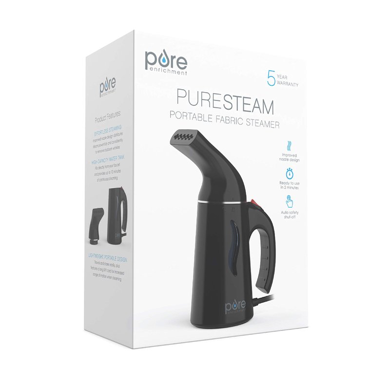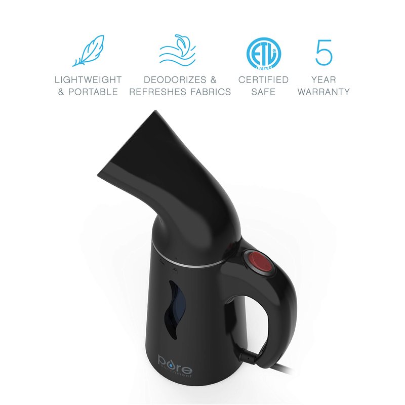Pure Enrichment® PureSteam™ Portable Handheld Garment Steamer - Ideal for Home or Travel, Fast Heating, Removes Wrinkles on Clothes and Fabric, Auto Shut-Off Safety Feature (Black)