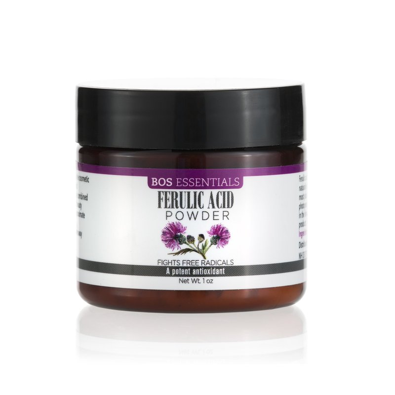 Ferulic acid is a potent antioxidant and free radical destroyer. When used in a serum, it protects skin from environmental damage and stabilizes vitamin C - preventing it from oxidizing and degrading. Ferulic acid powder is generally used in a 1% solution and dissolved in an alcohol base to prevent clouding before use.