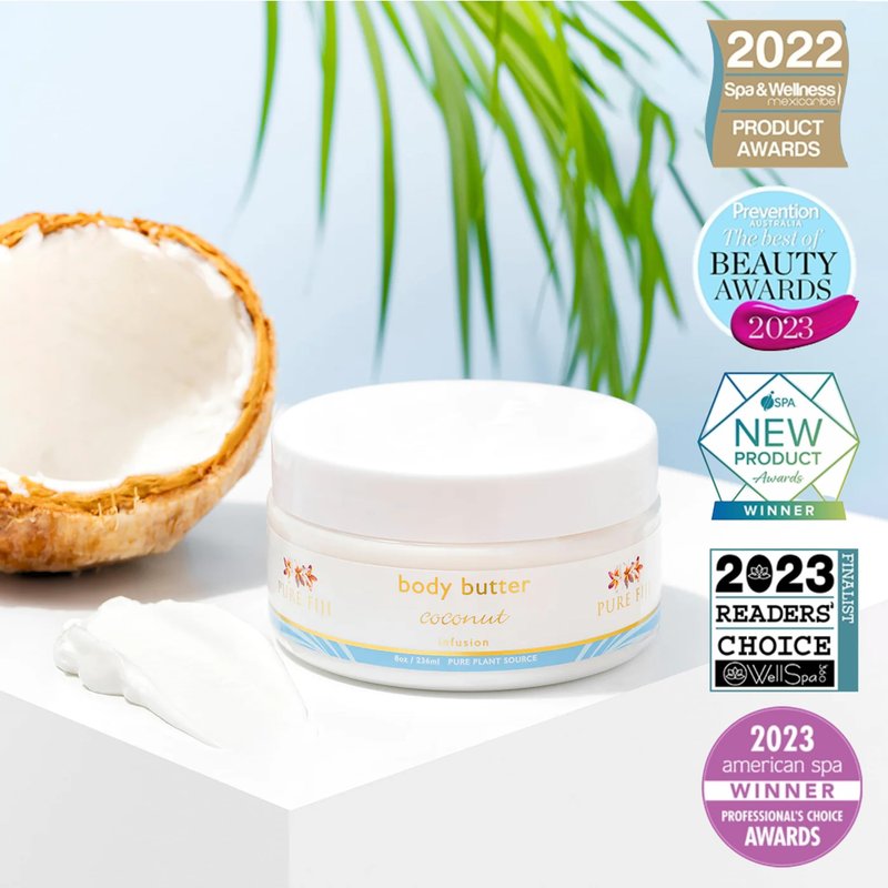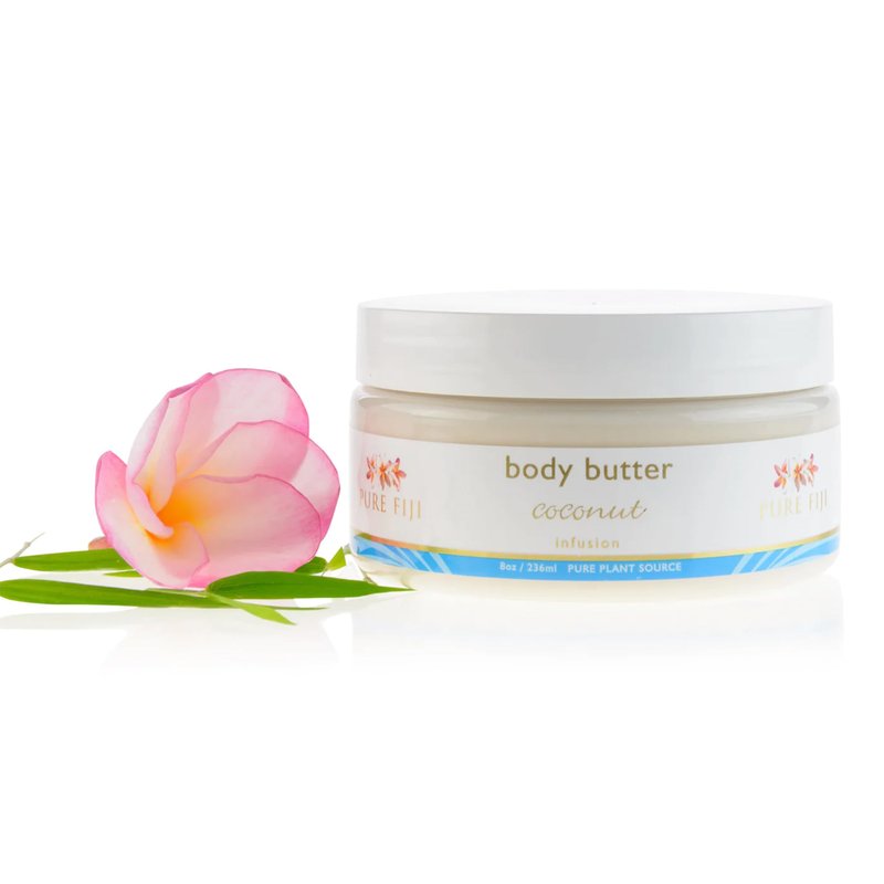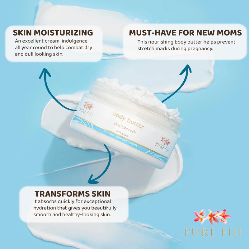 PURE FIJI Body Butter - Moisturizer Body Butter Cream - Face Cream and Body Lotion for Dry Skin with Natural Oils & Vitamin E, Body Butter For Women for Men,Coconut, 8oz