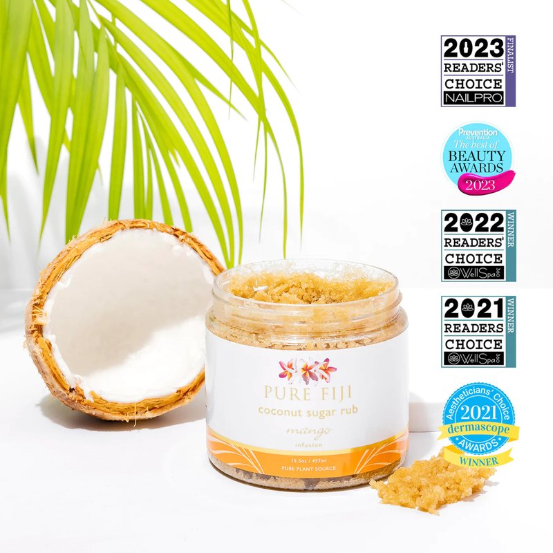Pure Fiji Coconut Sugar Body Scrub - Body Exfoliator Scrub Natural Origin for Smooths and Softens Skin - Organic Exfoliating Sugar Scrub for Body, Mango, 15.5 Oz