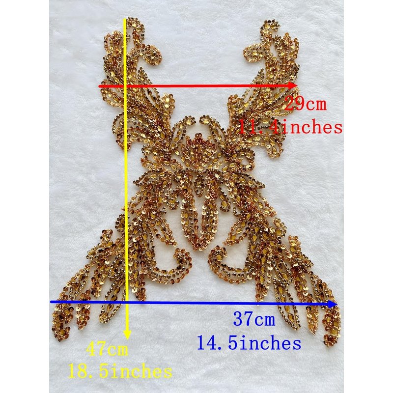 Size of model in picture:size 8 The shining stone is sewn on the lace, there is no glue on the back, please sew it on the clothes with a needle and thread Size:29*37*47cm
