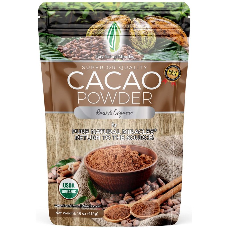Pure Natural Miracles Cacao Powder, Organic, Raw, Unsweetened Cocoa Powder, 16oz