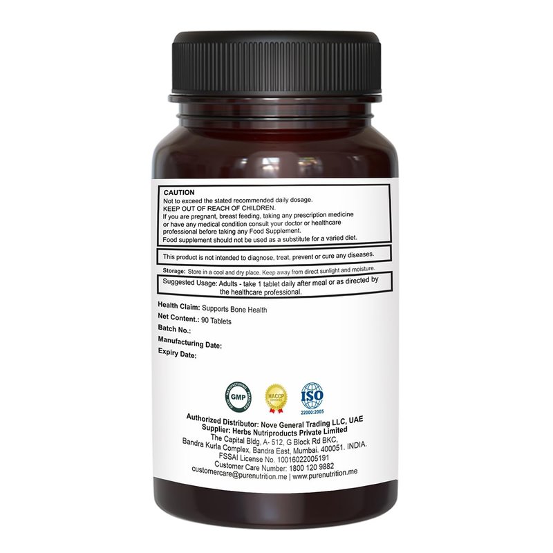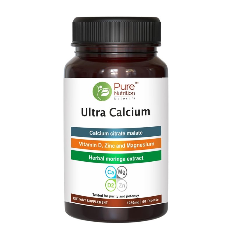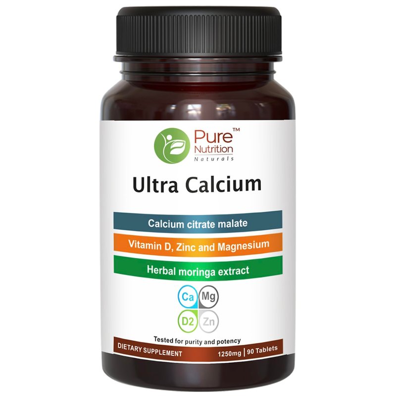 Pure Nutrition's Ultra Calcium Citrate helps maintain calcium levels. Minerals like zinc and magnesium also help in mineralization and collagen synthesis. Dosage: 1 tablet daily after meals Pure Nutrition's Ultra Calcium Citrate helps to manage rapid depletion of calcium levels. Contains 1000 mg Calcium Citrate, 400IU Vitamin D, 50 mg Magnesium Oxide, 50 mg Vitamin K27, 50 mg Moringa Oleifera, 4 mg Zinc Sulphate