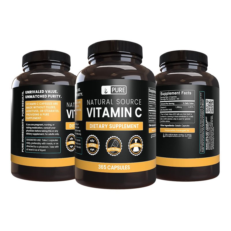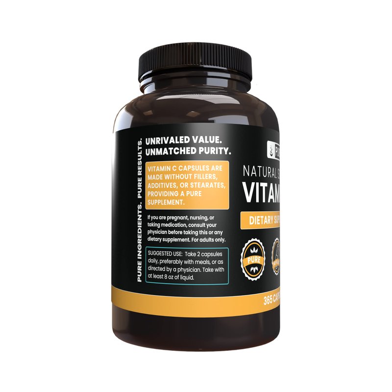 PURE ORIGINAL INGREDIENTS Vitamin C (365 Capsules) No Stearates or Rice Fillers, Gluten-Free, Vitamin C with No Additives