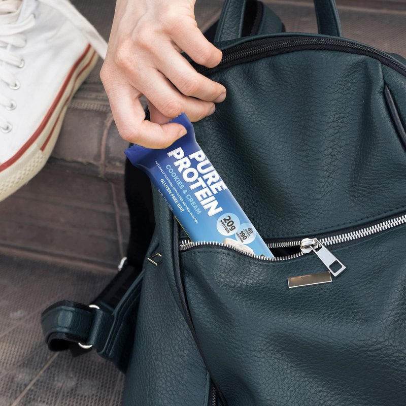 - DELICIOUS HIGH PROTEIN BAR: Pure Protein Cookies and Cream Bars are full of flavor and contain 20g of protein for lasting energy. Each delicious bar is gluten free with high-quality protein that helps build lean muscle and strength.
