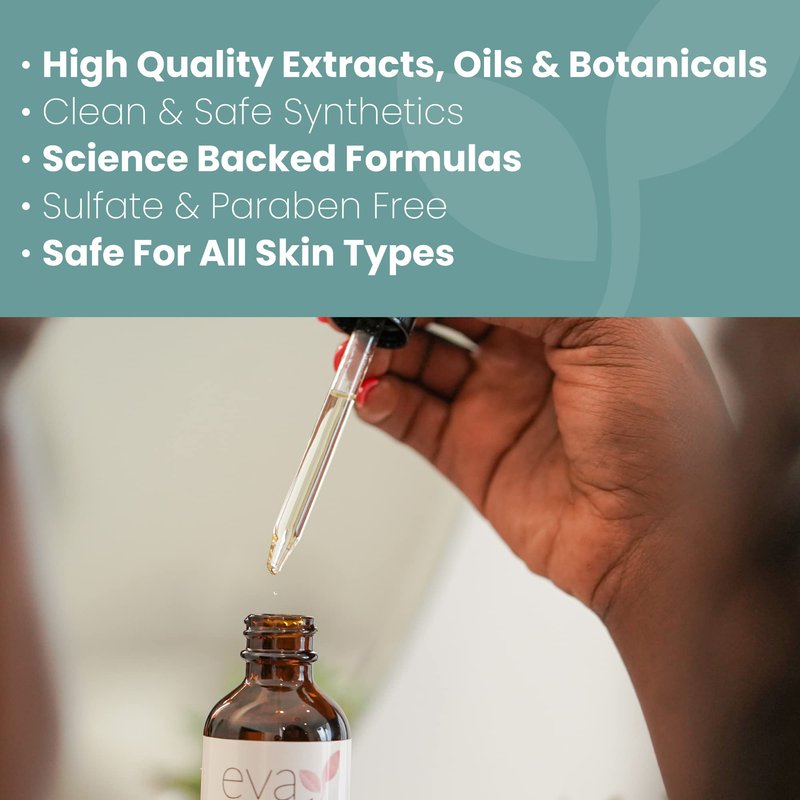 - Clean Beauty: Eva Naturals is dedicated to using high-quality botanicals, effective actives, and clean, science based synthetics in our products that are tried and tested to produce results. They are free of harmful parabens, sulfates and dyes.
