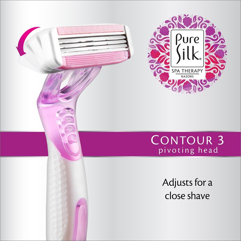Pure Silk Contour 3 Premium Disposable Razor, 4 Count