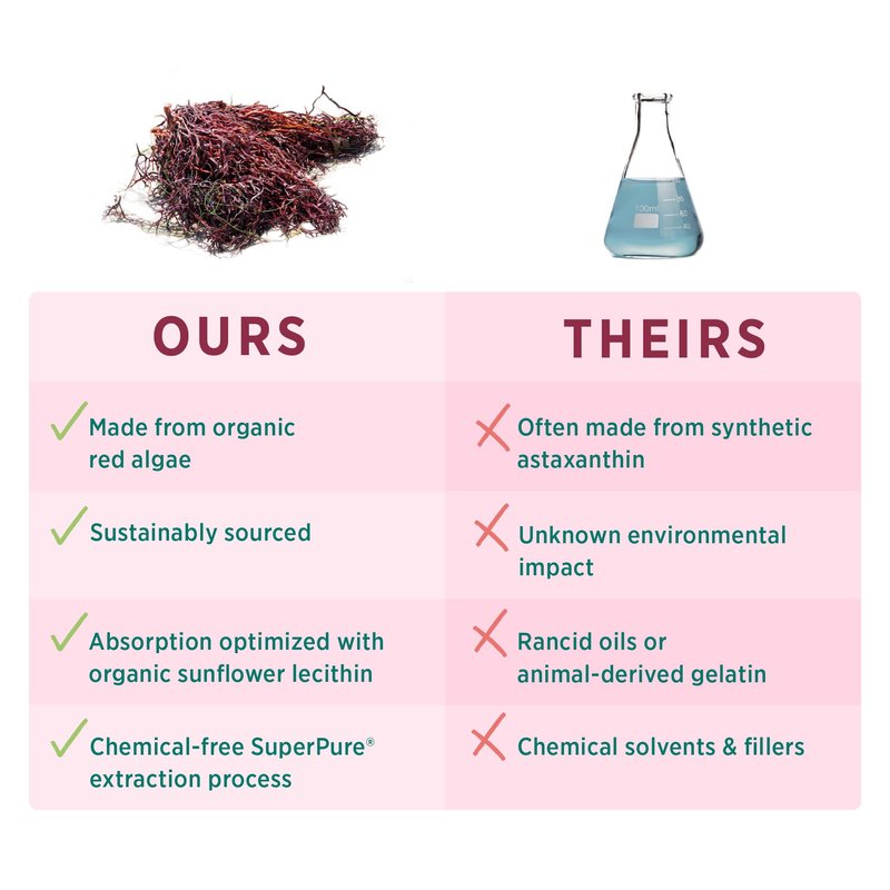 Nature’s Ultimate Antioxidant Astaxanthin is arguably the strongest natural antioxidant that science has ever found. As if that wasn’t impressive enough, we’ve taken this algae powerhouse to the peak of purity with our SuperPure, vegan formula. Many astaxanthin products in the marketplace are synthetically derived from petrochemicals or yeast and may use animal-derived gelatin and other undesirable additives.