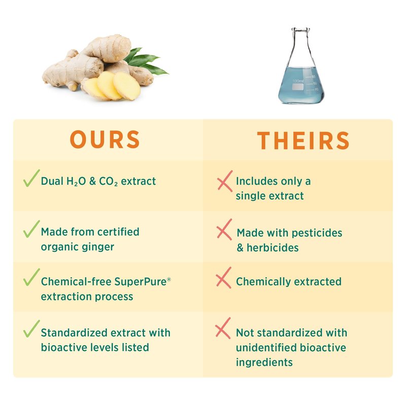 - GINGER ROOT REWARDS: Each bottle (60 capsules) contains pure, organic ginger root, double extracted with water and supercritical CO2 for optimal potency of research-backed gingerols and shogaols.