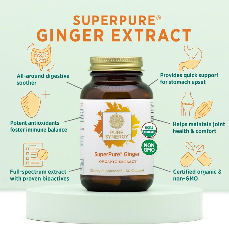 PURE SYNERGY SuperPure Ginger Extract | Ginger Root Extract Capsules | Organic Ginger Powder Digestion Supplement | for Stomach and Joint Support (60 Capsules)