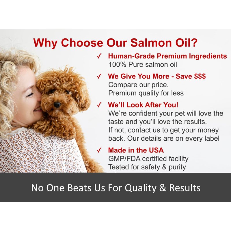 Pure Wild Alaskan Salmon Oil for Dogs & Cats - Relieves Scratching & Joint Pain, Improves Skin, Coat, Immune & Heart Health. All Natural Omega 3 Liquid Food Supplement for Pets. EPA + DHA Fatty Acids
