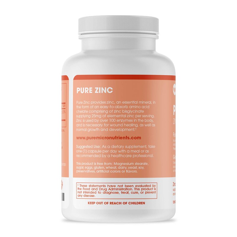 Pure Zinc Supplement, Natural Zinc Glycinate Supplements, (Chelated) 25mg, 120 - Pure Micronutrients