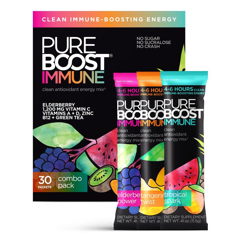 Pureboost Immune Clean Energy Drink Mix: Immunity Supplement with Elderberry, 1200 mg Vitamin C, Vitamins A + D, Zinc, 28 Vitamins, Minerals and Supernutrients (Combo, 30 Count)