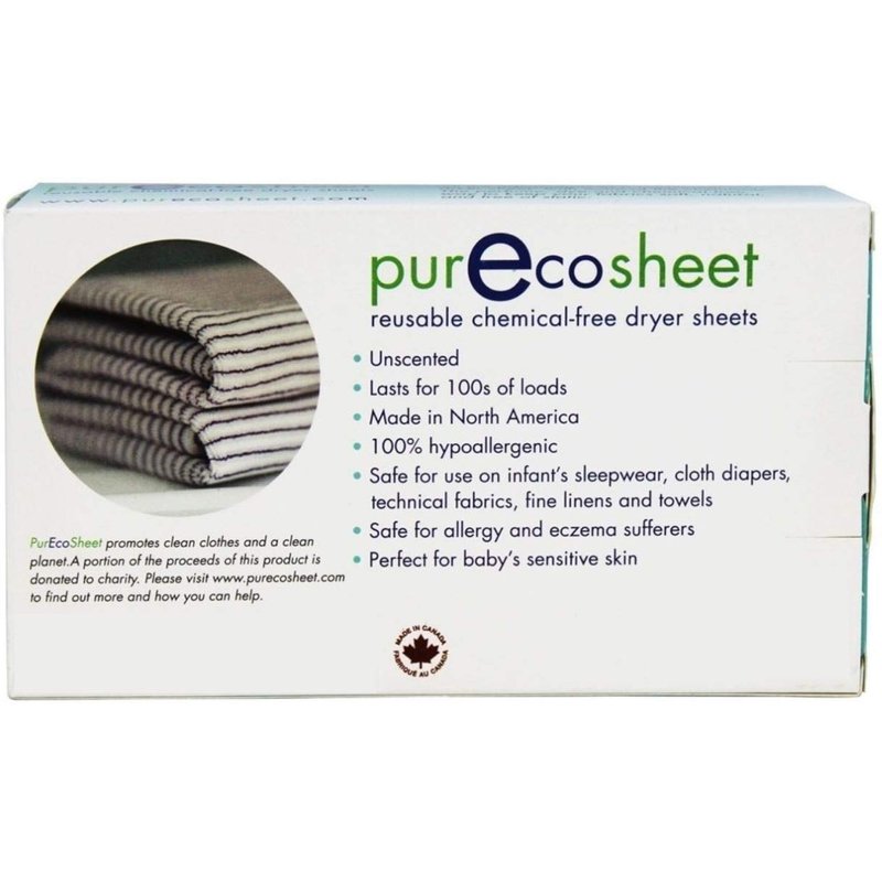 PurEcosheet has all the advantages of a traditional dryer sheet, with none of the chemicals. Our reusable dryer sheet eliminates static and keeps all of your fabrics fresh, soft and natural without leaving a chemical residue on your family's clothing. It's simple to use - just put both sheets in the dryer with your laundry and they will last for hundreds of loads. Your clothing will be soft and static free, without any added perfumes, dyes, soaps or chemicals. Our dryer sheets are vegan, hypoallergenic and safe for everyone, including infants and eczema and allergy sufferers.