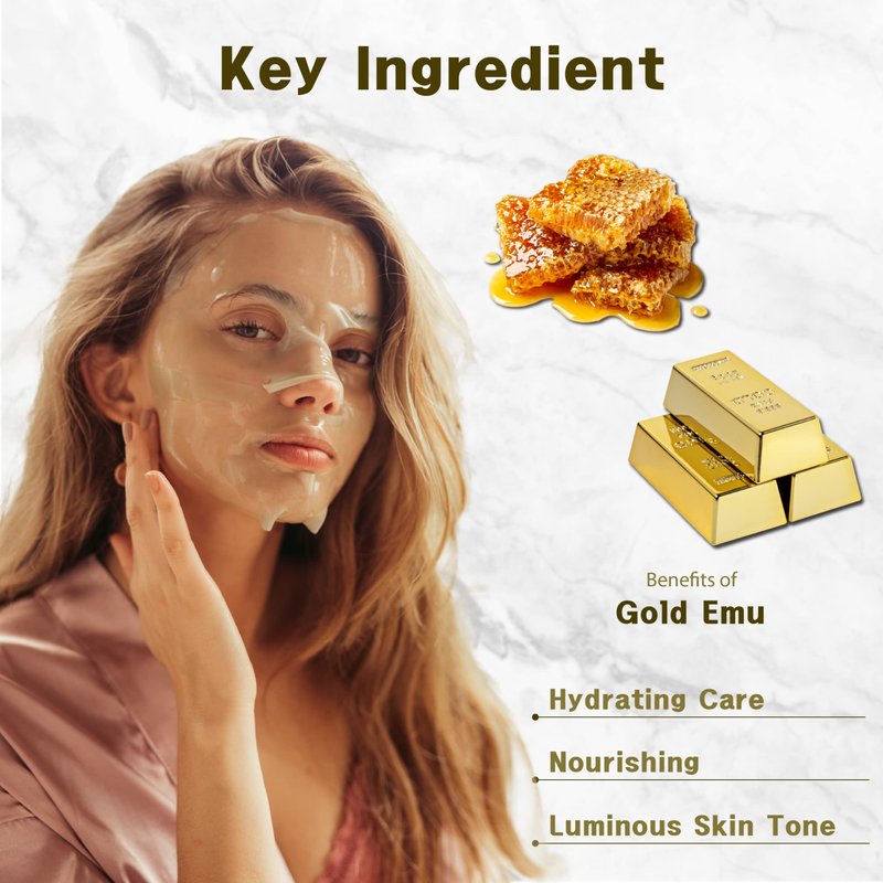 - INSTANT HYDRATING, BRIGHTENING & ANTIOXIDANT: Purederm Gold Emu Hydro Pure Gel Mask rehydrates and nourishes dry, lifeless skin, promoting a brighter, more youthful appearance - Gold purifies skin and a large amount of emu oil nourishes and revitalizes skin, transforming dry, rough skin into a soft, glowing texture