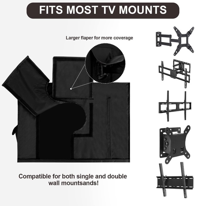 - FITS VARIOUS MOUNTS: The outdoor TV protector's back features a large rounded opening that can be adapted to many types of mounts, such as double wall, single wall, ceiling mounts, tilting TV mount. And velcro with use, super easy to install, can be put on and off by one person in seconds!