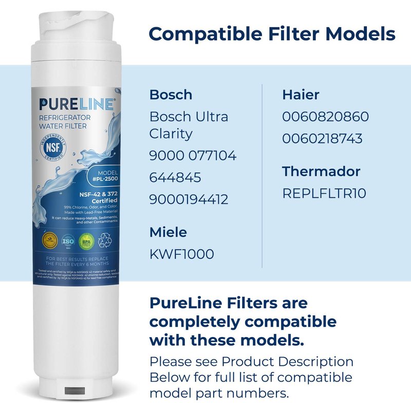 Pureline was founded with the belief and mission that every human being is entitled to clean and safe drinking water. Pureline filters are compatible with 644845, 9000194412, 9000077104, REPLFLTR10, B26FT70SNS, B22CS80SNS, B22CS50SNS, Haier 0060820860