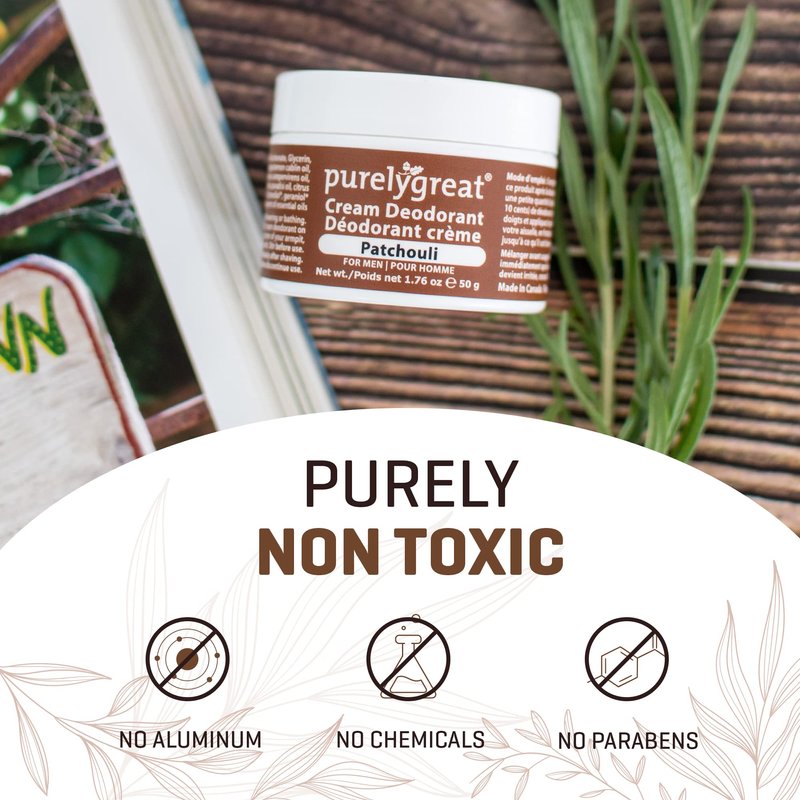 Purelygreat - All Natural Men’s Deodorant, Long-Lasting Natural Deodorant for Daily Use, Aluminum-Free Cream Deodorant for Men, EWG Verified Handcrafted Vegan Deodorant, Patchouli, 50 g