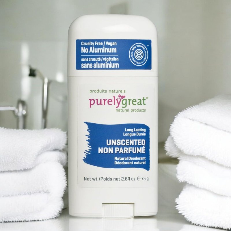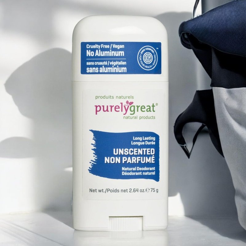 Purelygreat Natural Deodorant Stick, Unscented, EWG Verified, Vegan, Cruelty-Free, No Aluminium, No Parabens