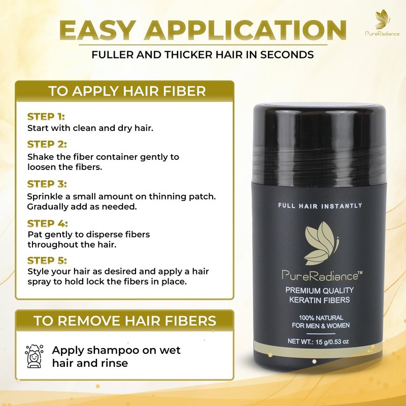 - Luxurious Keratin Fibers: PureRadiance hair filler for thinning hair is crafted from premium keratin fibers, providing you with the most real look possible. It's like adding real hair to your strands! Don't settle for products made from cotton fibers that clump up and look unreal.